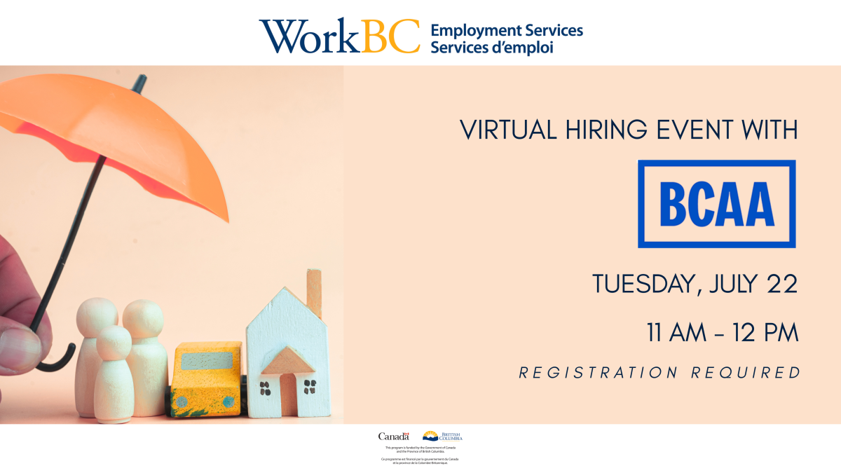 WorkBC Centre Courtenay is excited to host a virtual Hiring event with BCAA.